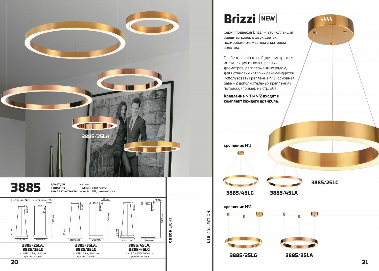 3885/35LG L-VISION ODL20 113 мат. золот/металл Подвесной светильник LED 4000K 42W 2100Лм (2 вида крепления) 220V BRIZZI