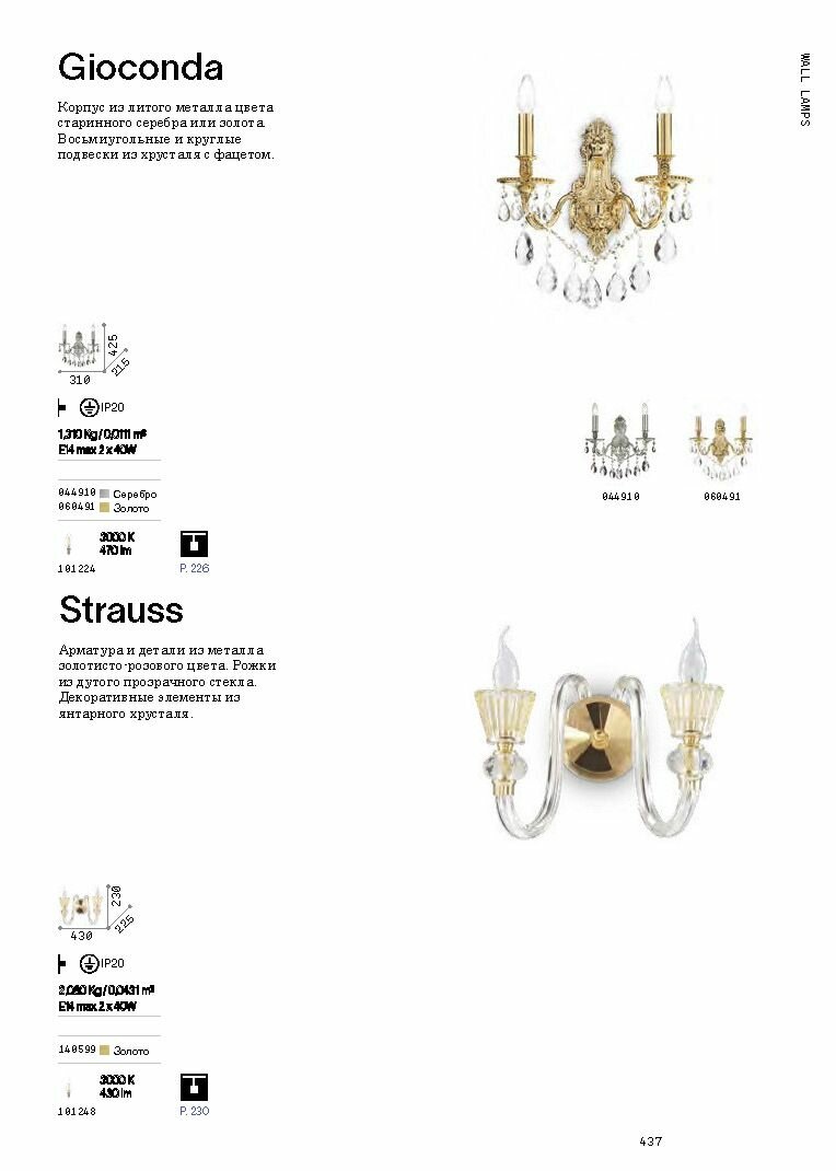 Светильник настенный Ideal Lux Gioconda AP2 маск.2x40Вт IP20 Е14 230В Золото/Прозрачный Металл/Хрусталь Без ламп 060491. интересное: