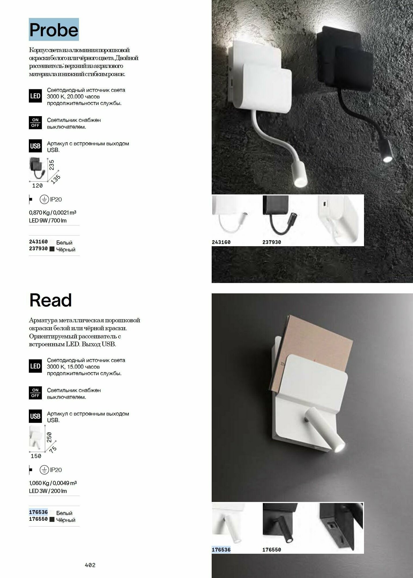 Светильник настенный ideal lux Probe AP2 9Вт 700Лм 3000К IP20 LED 230В Черный матовый Алюминий/Акрил Выключатель Выход USB Не диммируемый 237930. интересное: