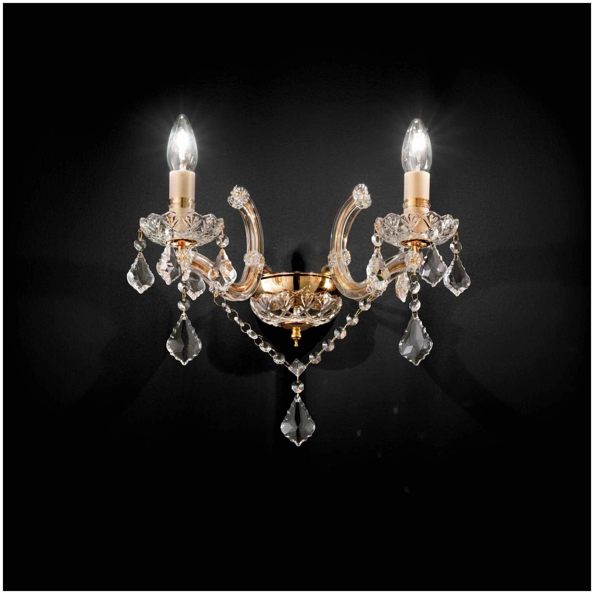 Светильник настенный ideal lux Florian AP2 макс.2x40Вт IP20 Е14 230В Прозрачный/Золотой Хрусталь/Стекло/Металл Без ламп 035659.