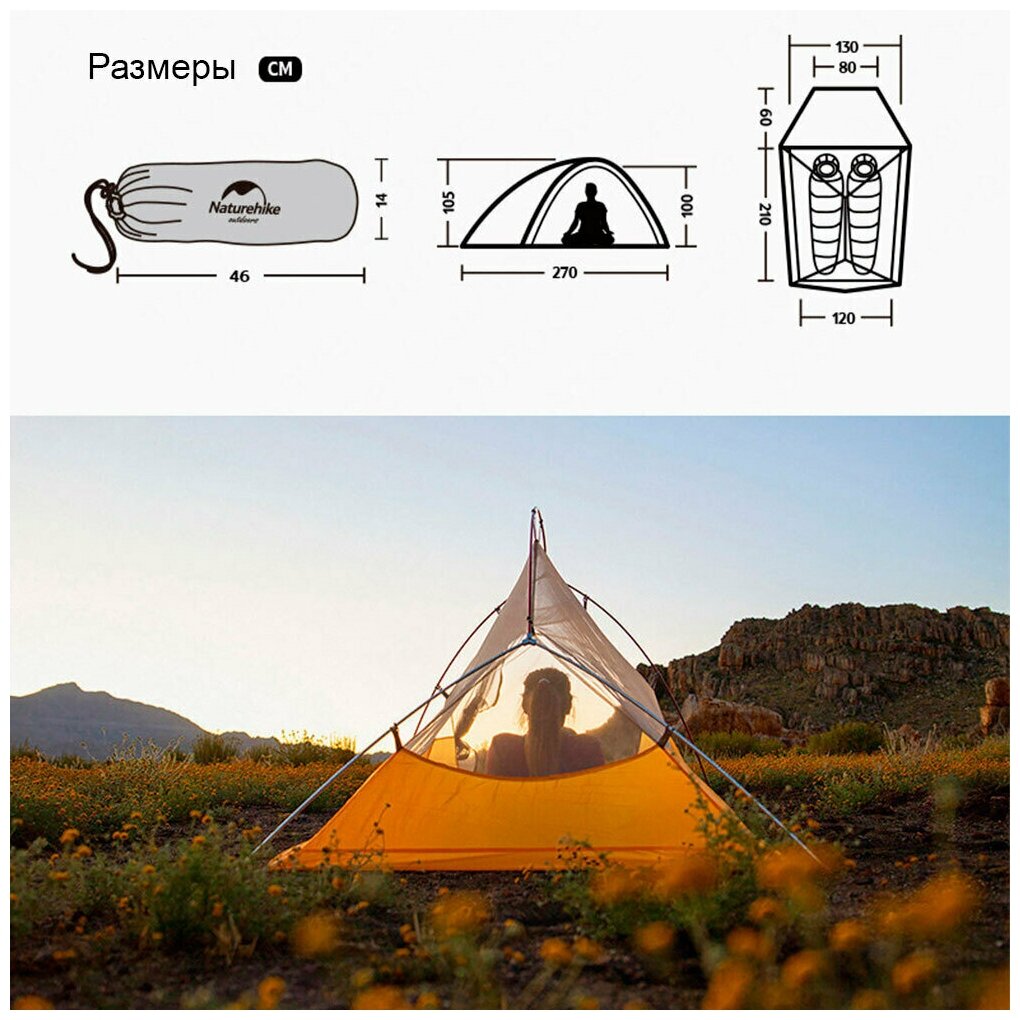 Палатка Naturehike Cloud Up 2 10D Superlight Professional Tent Grey/Yellow интересное: