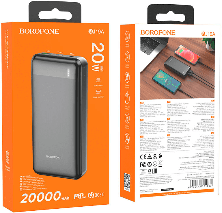 Портативный аккумулятор BOROFONE BJ19A Incredible, PD20W+QC3.0, 20000mAh, черный