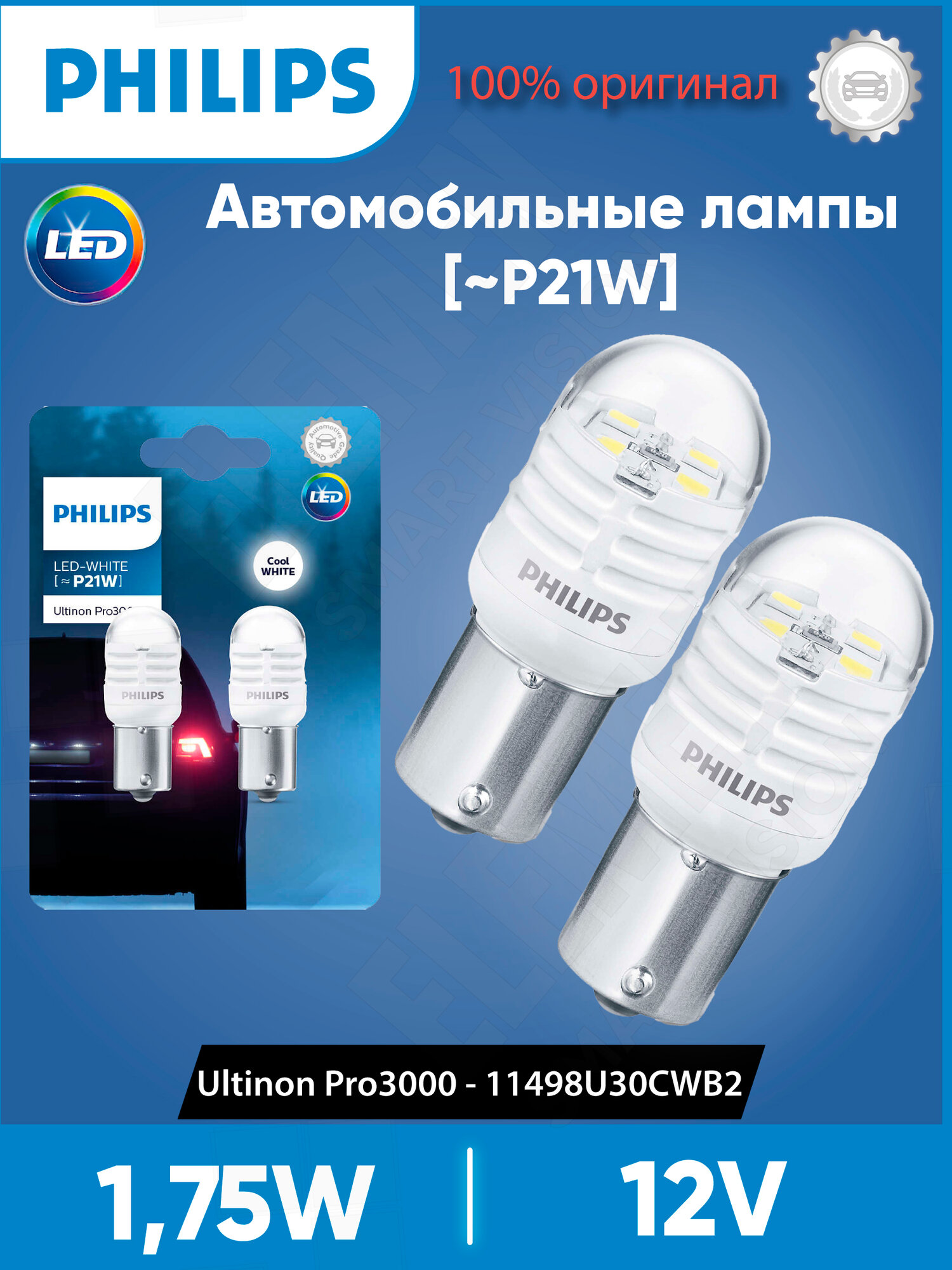 PHILIPS 11498U30CWB2 Светодиодная лампа Philips 11498U30CWB2 Ultinon Pro 3000 P21W White 2шт.+ QR код подлинности 1шт