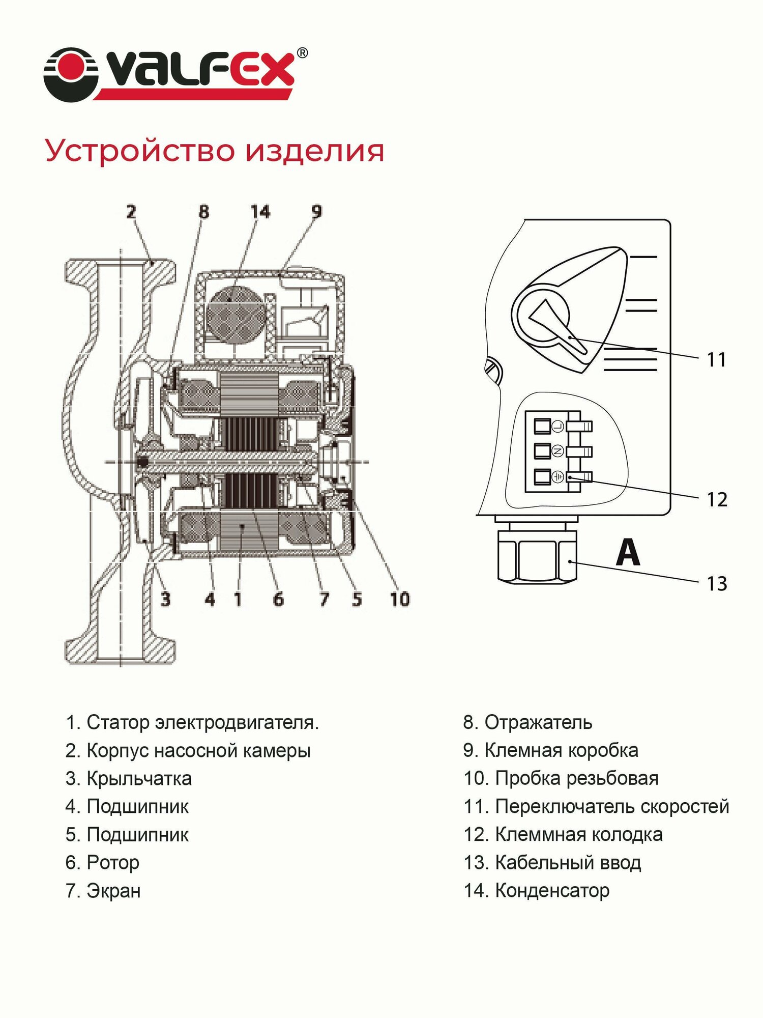 Циркуляционный насос VALFEX VCP 25-60G 130мм (с гайками) (8)