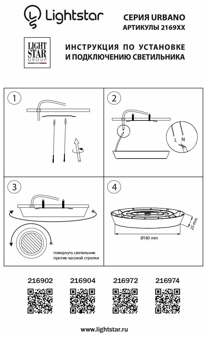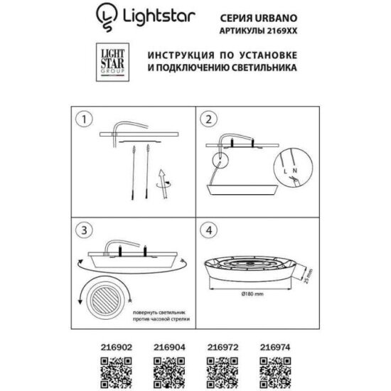 Накладной светильник Lightstar Urbano, черный, арт.216972