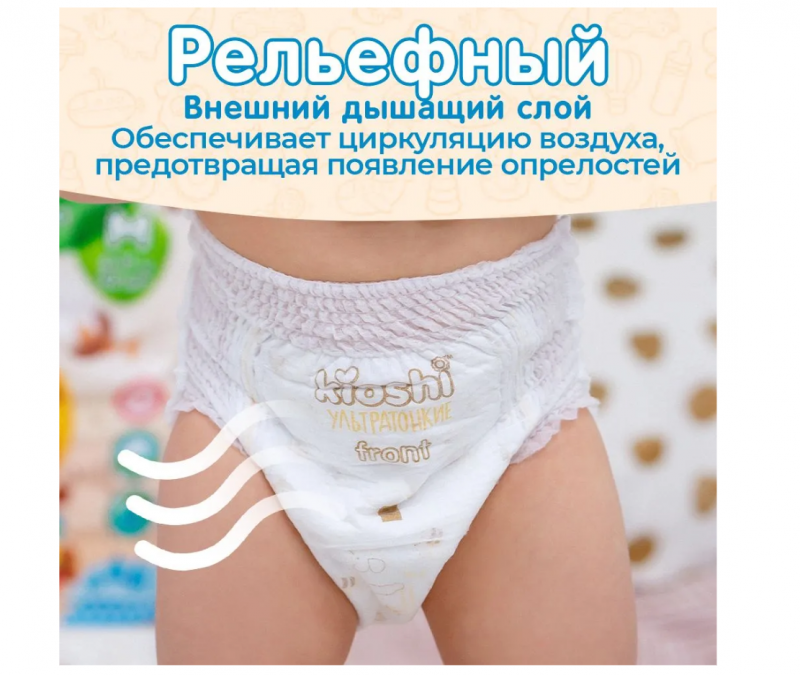 Отлично подходят как для худенького, так и для толстопопика. Нигде ничего не натерли сыну не разу. Никаких раздражений не заметила. При наполнении они не становятся огромными и тяжёлыми, и не воняют. Трусики классные, это были наши любимые. Внутри после пописов были сухие. Есть сзади лента, так же есть ещё и индикатор наполнения. Я сейчас жду малышку, поэтому буду брать для неё только kioshi. |