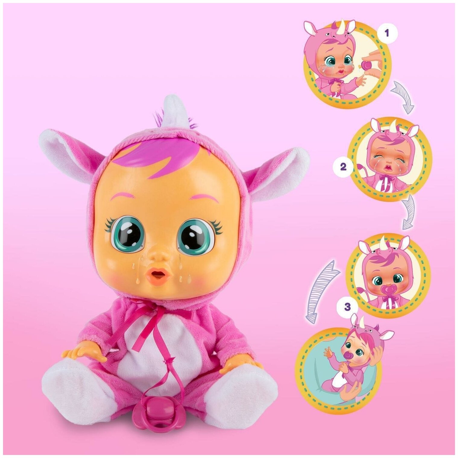 | Минусы: | У куклы не вытекают слёзы, только звуковое сопровождение! |