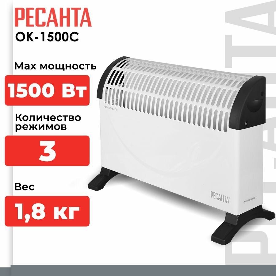 Конвектор РЕСАНТА ОК-1500С, белый/черный