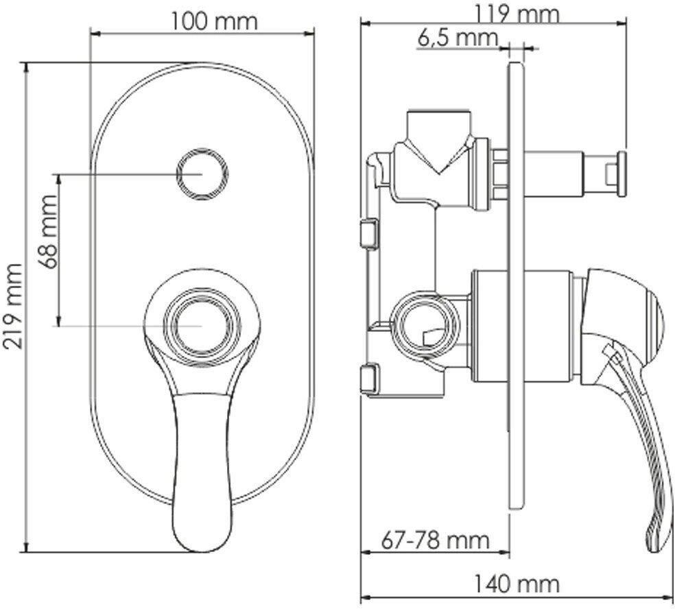 ARGO Смеситель для ванны и умывальника TIMOS, d-35, кнопка 41086