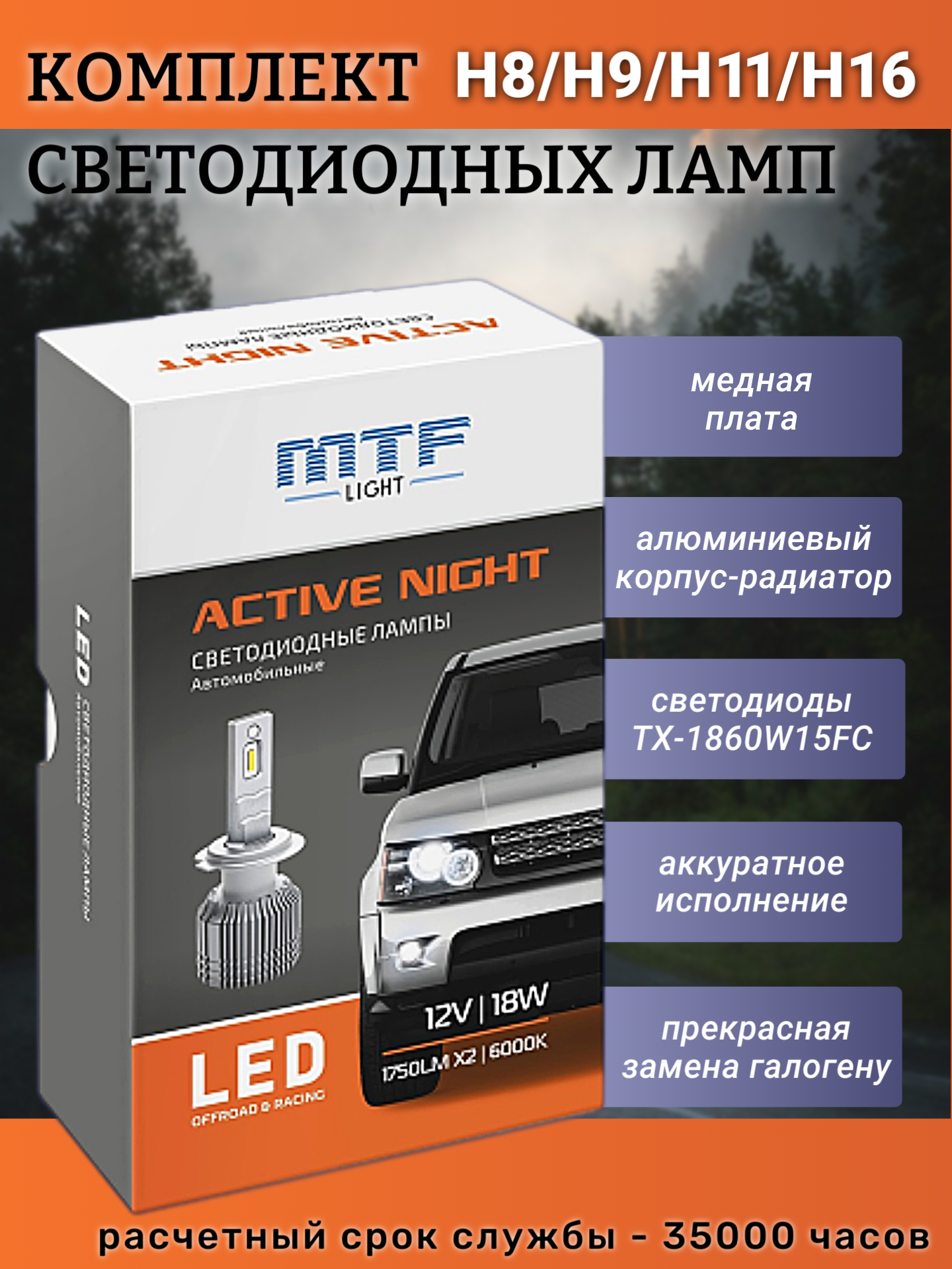 Светодиодные лампы MTF Light ACTIVE NIGHT H8 6000K интересное: