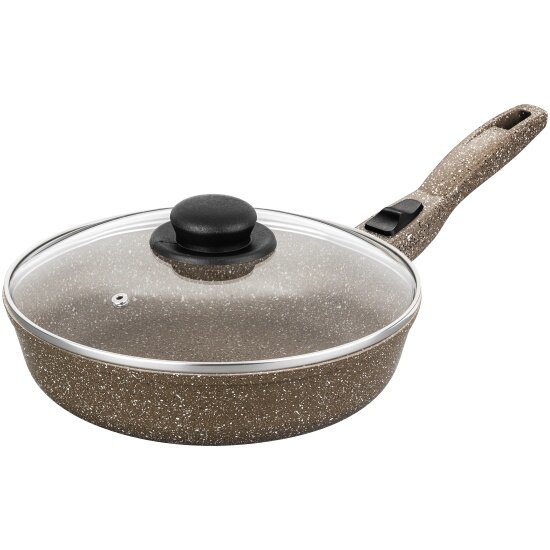 Сковорода глубокая 24 см Elan Gallery гармония вкуса Коричневый мрамор индукция, с крышкой D24, со съёмной ручкой