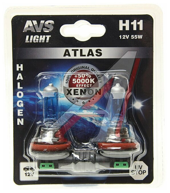 Лампы "Atlas" H11 12v 55w 5000к (Блистер, 2шт) AVS арт. A78565S