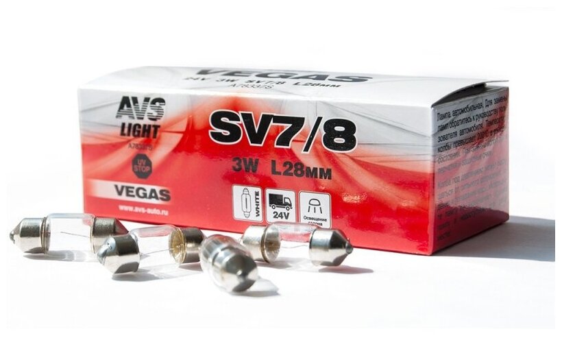 AVS A78337S Лампа 24 В 3 Вт салонная пальчиковая 28 мм 10 шт. Vegas AVS интересное: