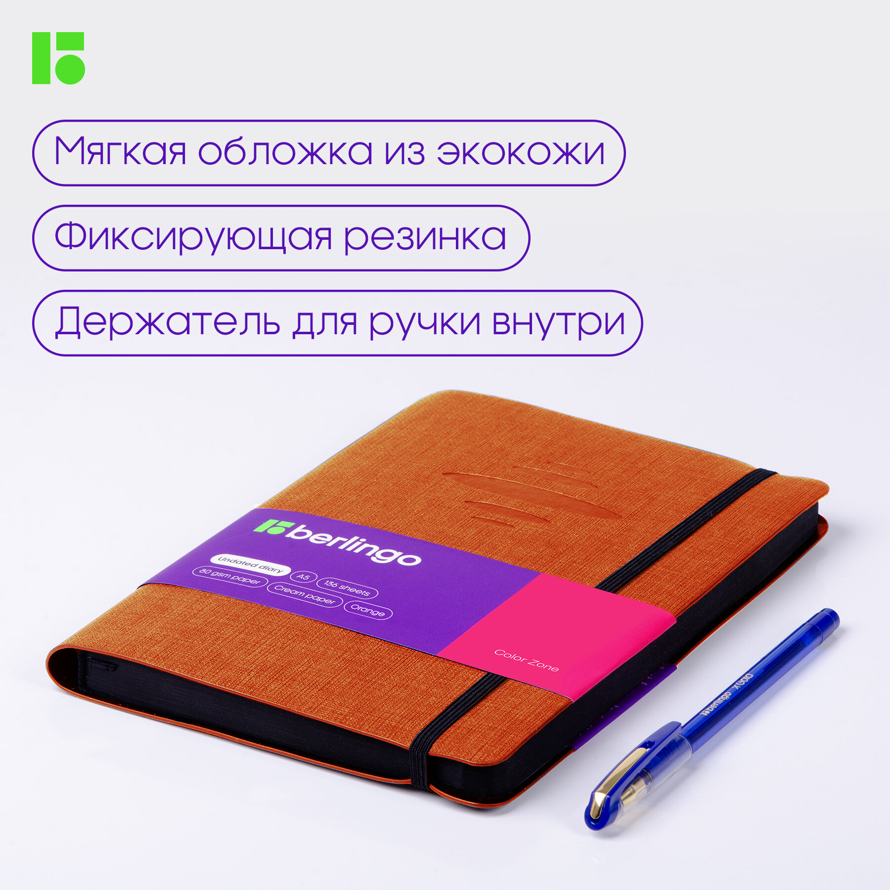 Ежедневник недатированный, А5, 136л, кожзам, Berlingo "Color Zone", черн. срез, с резинкой, оранжевый, 1 шт.
