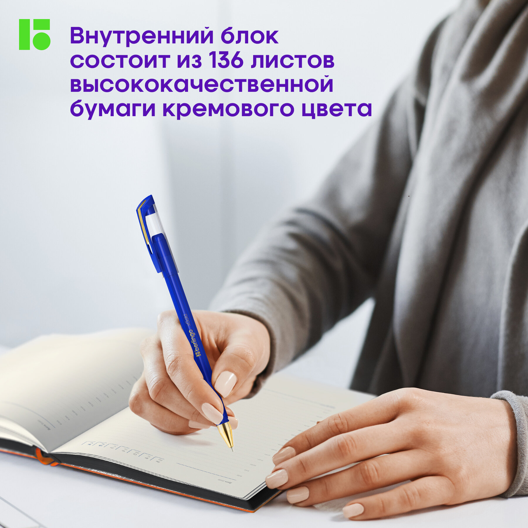 1 шт - Ежедневник недатированный, А5, 136л., кожзам, Berlingo "Color Zone", черн. срез, с резинкой, оранжевый