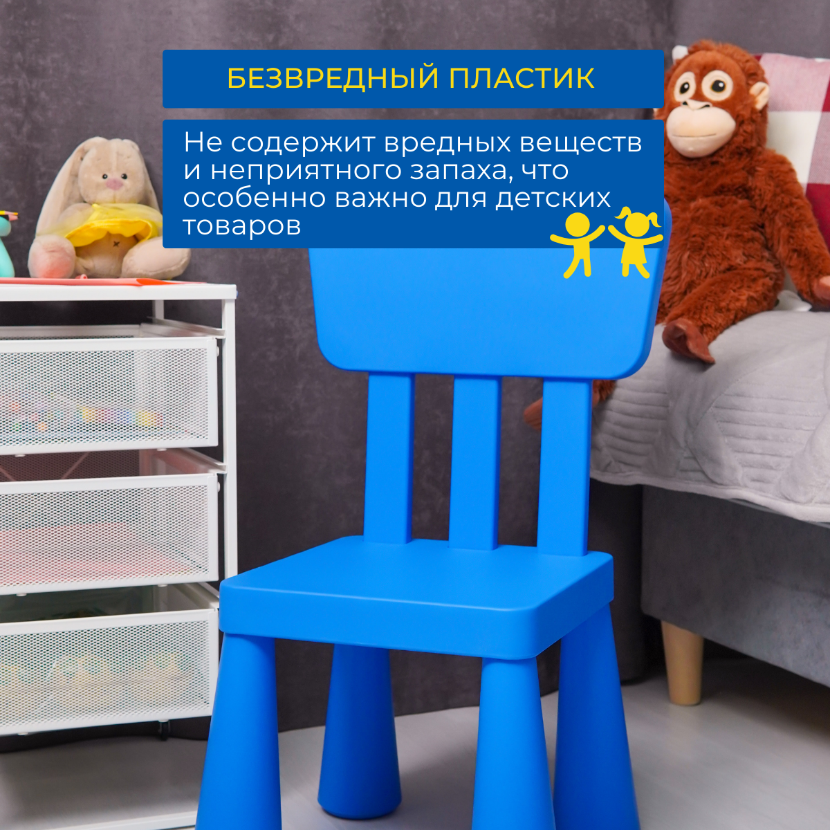Детский стул икеа маммут (IKEA MAMMUT), 39х36х67 см, 2 шт, синий