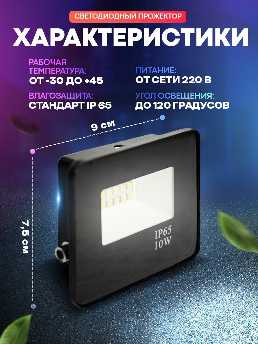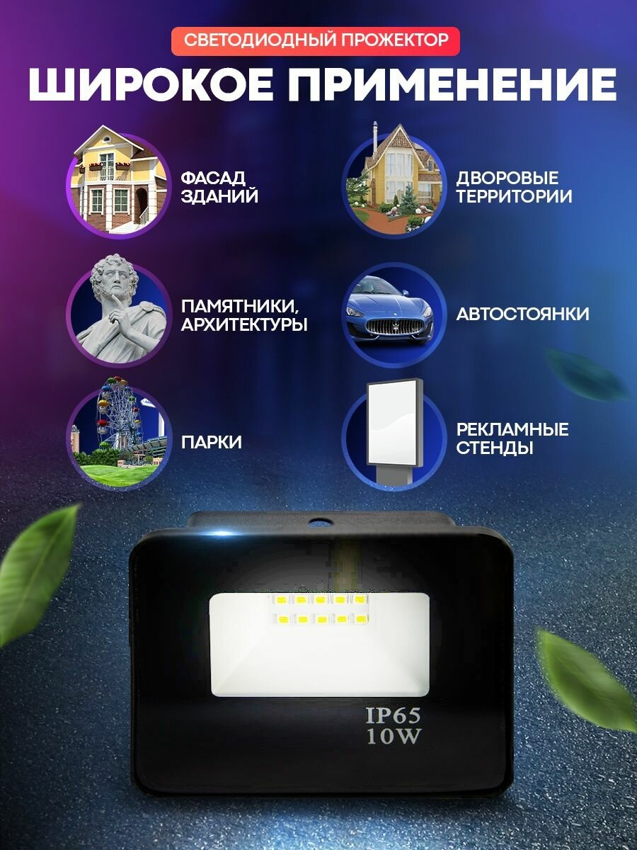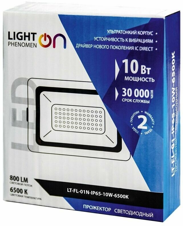Прожектор светодиодный LightPhenomenON LT-FL-01N-IP65-10W-6500K LED, 10 Вт, свет: холодный белый интересное: