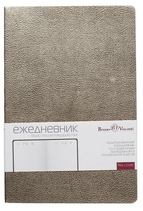 Ежедневник Bruno Visconti Megapolis Flex недатированный, искусственная кожа, А5, 136 листов, серебристый, цвет бумаги тонированный
