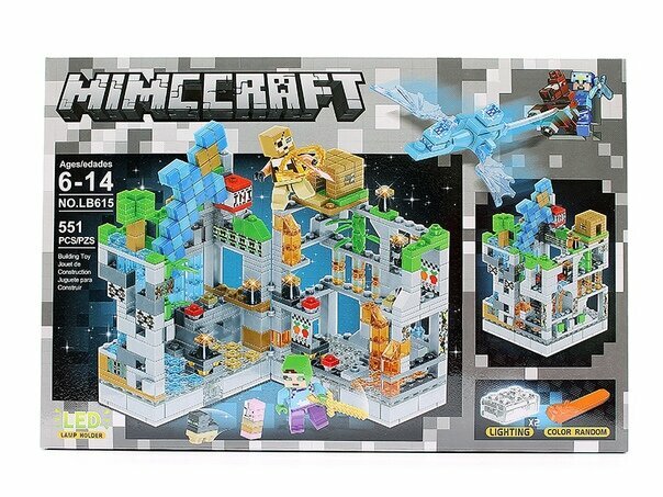 Конструктор Майнкрафт "Голубая крепость" 898 деталей с LED-подсветкой конструктор для мальчиков Minecraft LB696