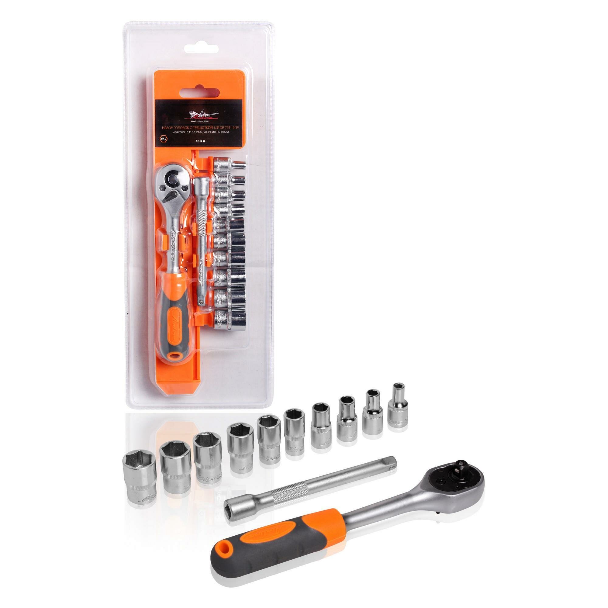 Купить Набор головок с трещоткой 1/4" DR 72Т 12пр. (4,5,6,7,8,9,10,11,12,13мм, удлинитель 100мм) (AT-12-26)