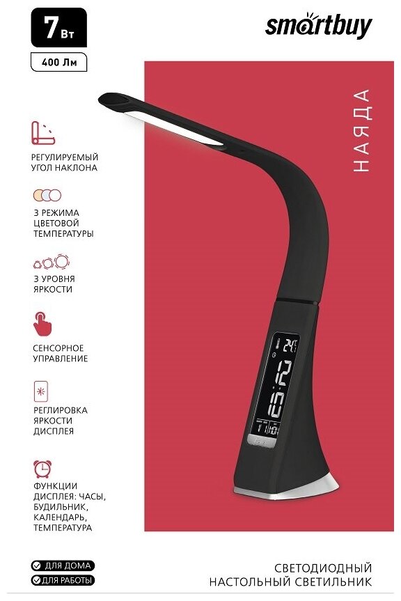 Светодиодный настольный светильник SmartBuy Наяда, 7 Вт, черный