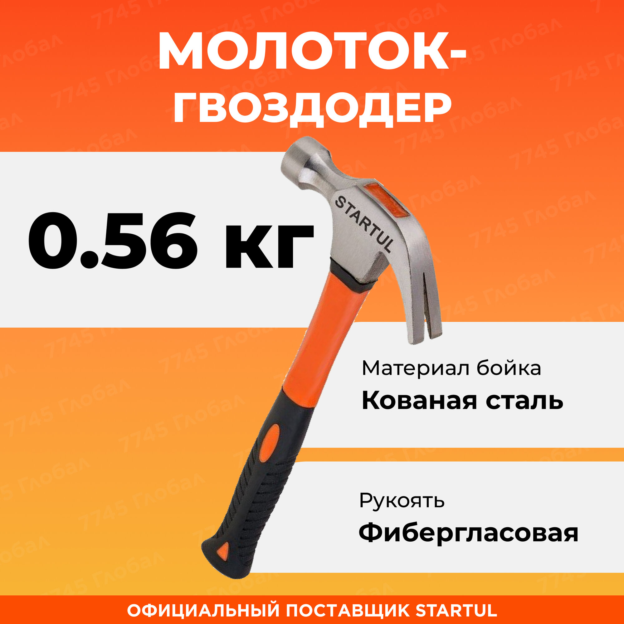 Молоток-гвоздодер 0,56 кг с фиберглассовой рукояткой STARTUL MASTER