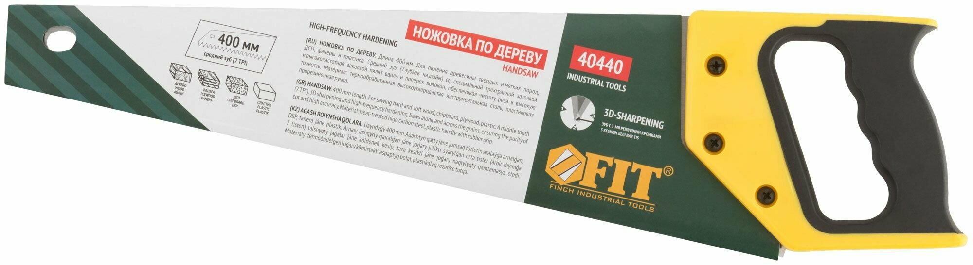 FIT Ножовка по дереву, средний каленый зуб 7 ТPI, 3D заточка, пласт.прорезиненная ручка, Профи 400 мм ( 40440 )