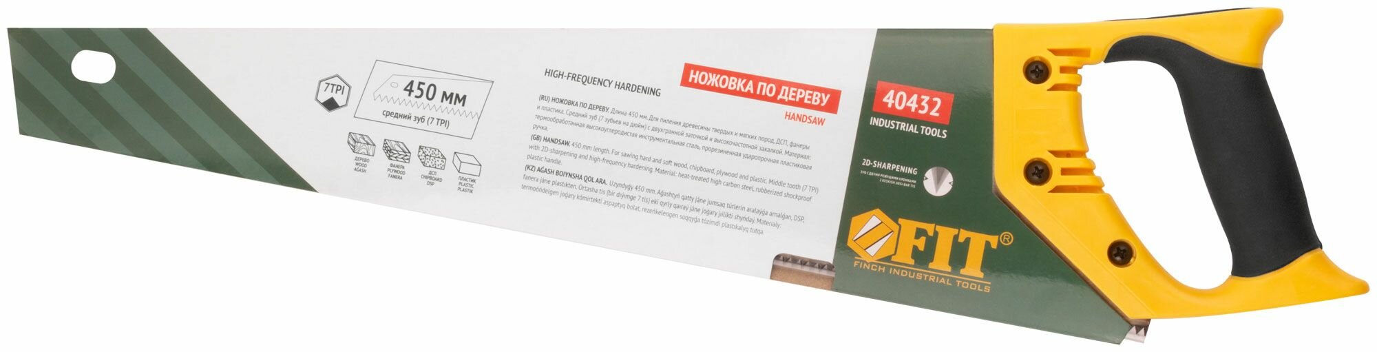 Ножовка ПО Дереву 450ММ 2D-ЗАТОЧКА Сред ЗУБ 7ТRI Кален FIT (10) 40432 .