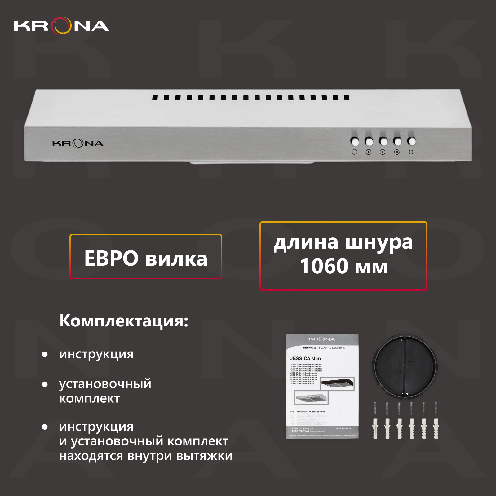 Вытяжка козырьковая Krona Jessica slim PB 500 нержавеющая сталь управление: кнопочное (1 мотор)