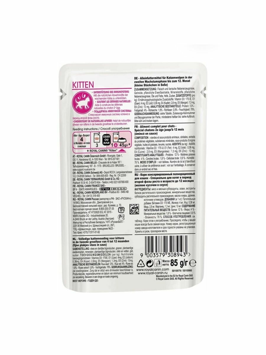 СохранитьRoyal Canin паучи RC Кусочки в соусе для котят 4-12 мес. (Kitten) 40580008R0 0,085 кг 41712 (10 шт) интересное: