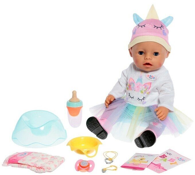Кукла Zapf Creation Baby born Девочка в костюме единорога с магическими глазками 43 см 831-540