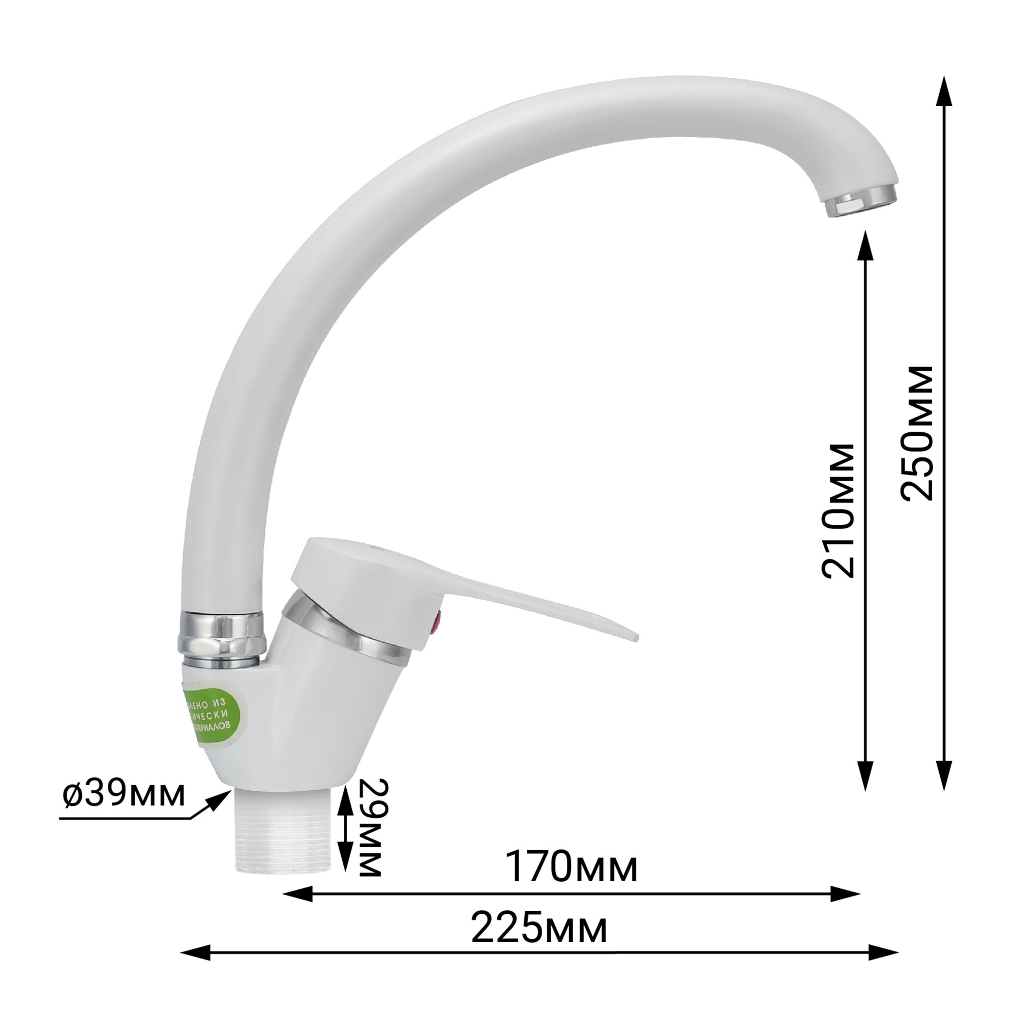 Купить Смеситель для мойки цветной (белый) одноручный Juguni Luxe с поворотным изливом, 40 картридж, гайка