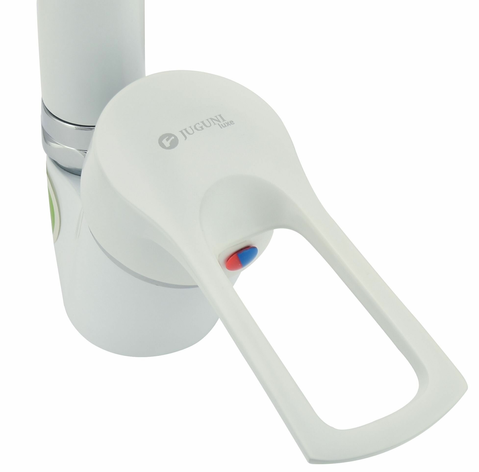 Смеситель для мойки цветной (белый) одноручный Juguni Luxe с поворотным изливом, 40 картридж, гайка, 0402.449