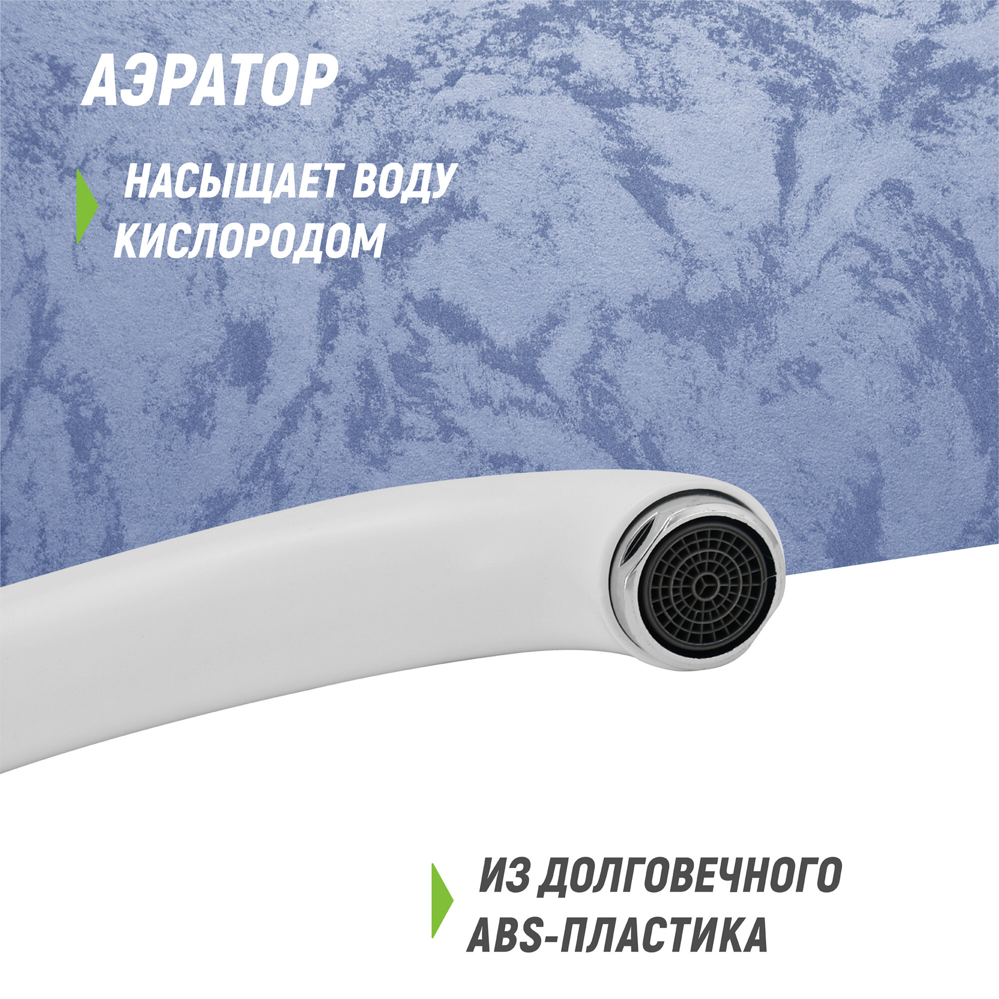 Смеситель для мойки белый одноручный Juguni Luxe с поворотным изливом, 40 картридж, гайка, 0402.449