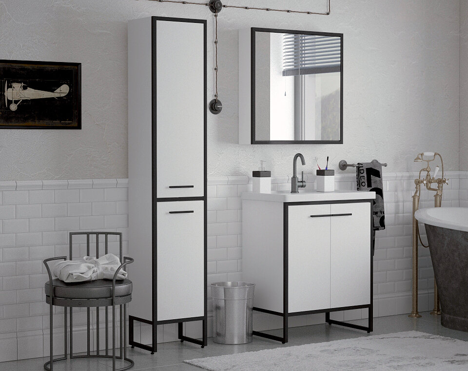 Тумба под раковину Corozo Айрон 70, черный/белый