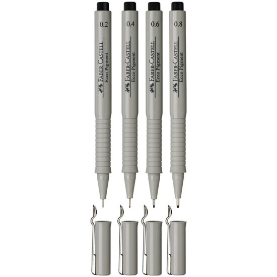 Набор капиллярных ручек Faber-Castell Ecco Pigment, 4 шт, черные, 0,2/0,4/0,6/0,8 мм