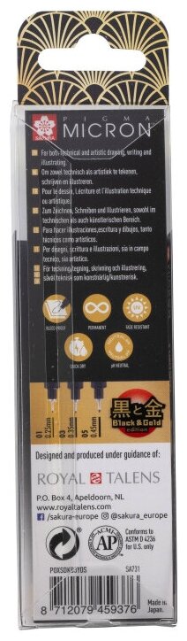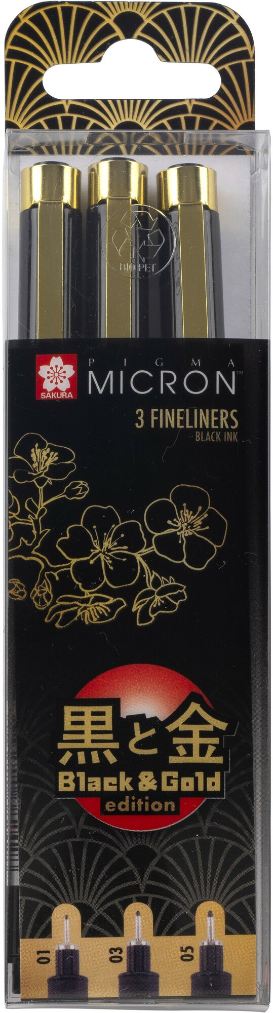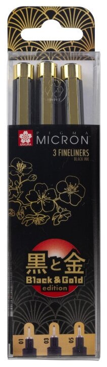 Sakura Набор капиллярных ручек "Pigma Black & Gold" лимитированный, 3шт (01, 03, 05), черный