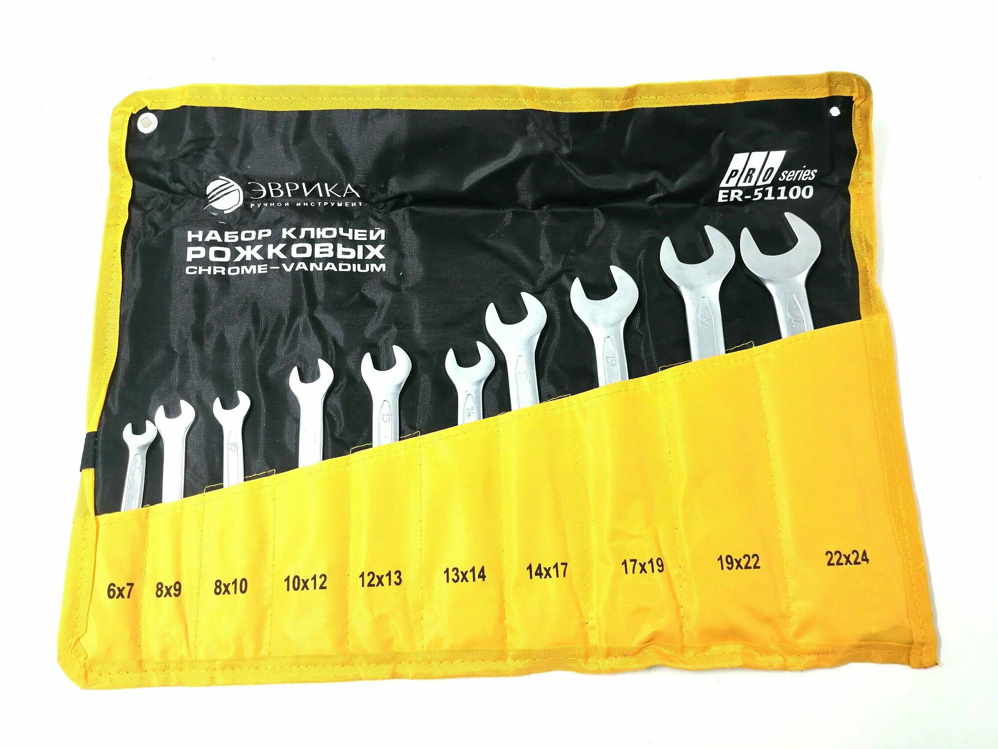 Купить Набор ключей рожковых ER-51100 (6х7,8х9,8х10,10х12,12х13,13х14,14х17,17х19,19х22,22х24мм) планшет 10 предметов CrV PRO эврика