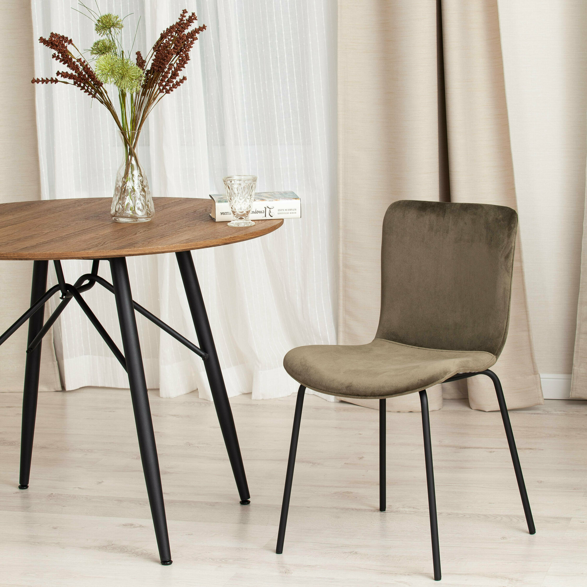 Купить Стул GILLIAN (mod. 0137017-NI) металл/вельвет, 45х52,5х78 см, хаки S108 (85 DARK TAN)/черный