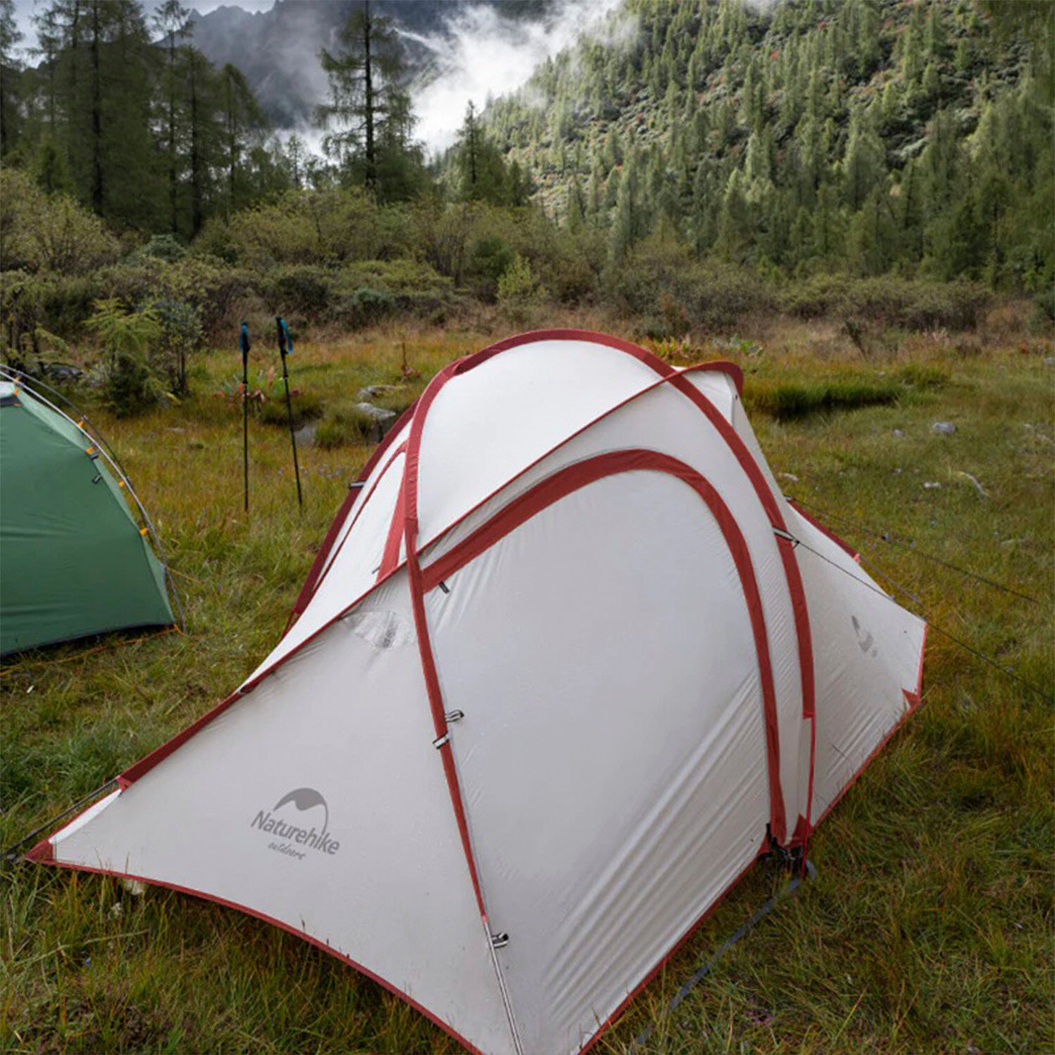 Палатка Naturehike Hiby Si 3-местная, алюминиевый каркас, серо-красная
