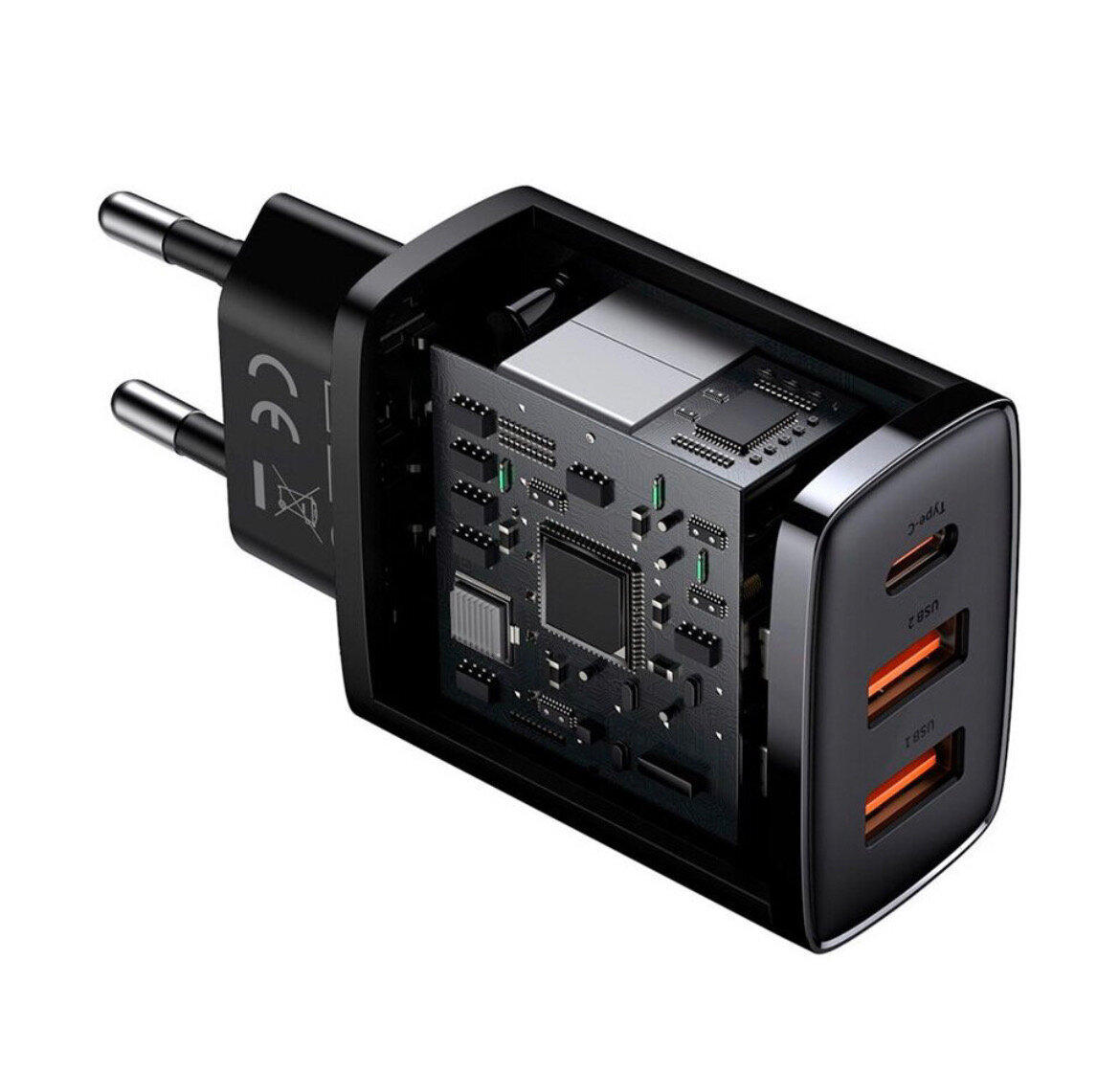 Блок питания Baseus Compact Quick Charger 2U+C 30W-черный,без кабеля