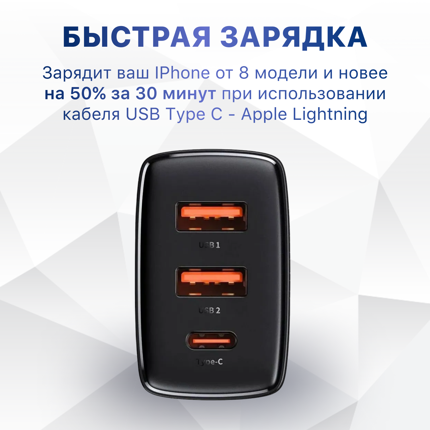 Сетевое зарядное устройство Baseus 30W Быстрая зарядка PD 3.0 + QC 3.0, 2 x USB + USB Type-C Compact Quick Charger CCXJ-E01 для телефона Apple iPhone Android