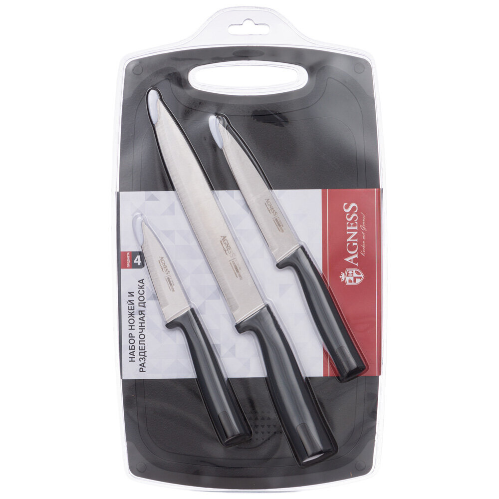 Купить Набор Ножей Agness С Разделочной Доской, 4 Предмета
