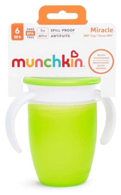 Купить Поильник с крышкой MIRACLE 360° Munchkin непроливайка, с ручками, 207мл. 6мес+, зеленый
