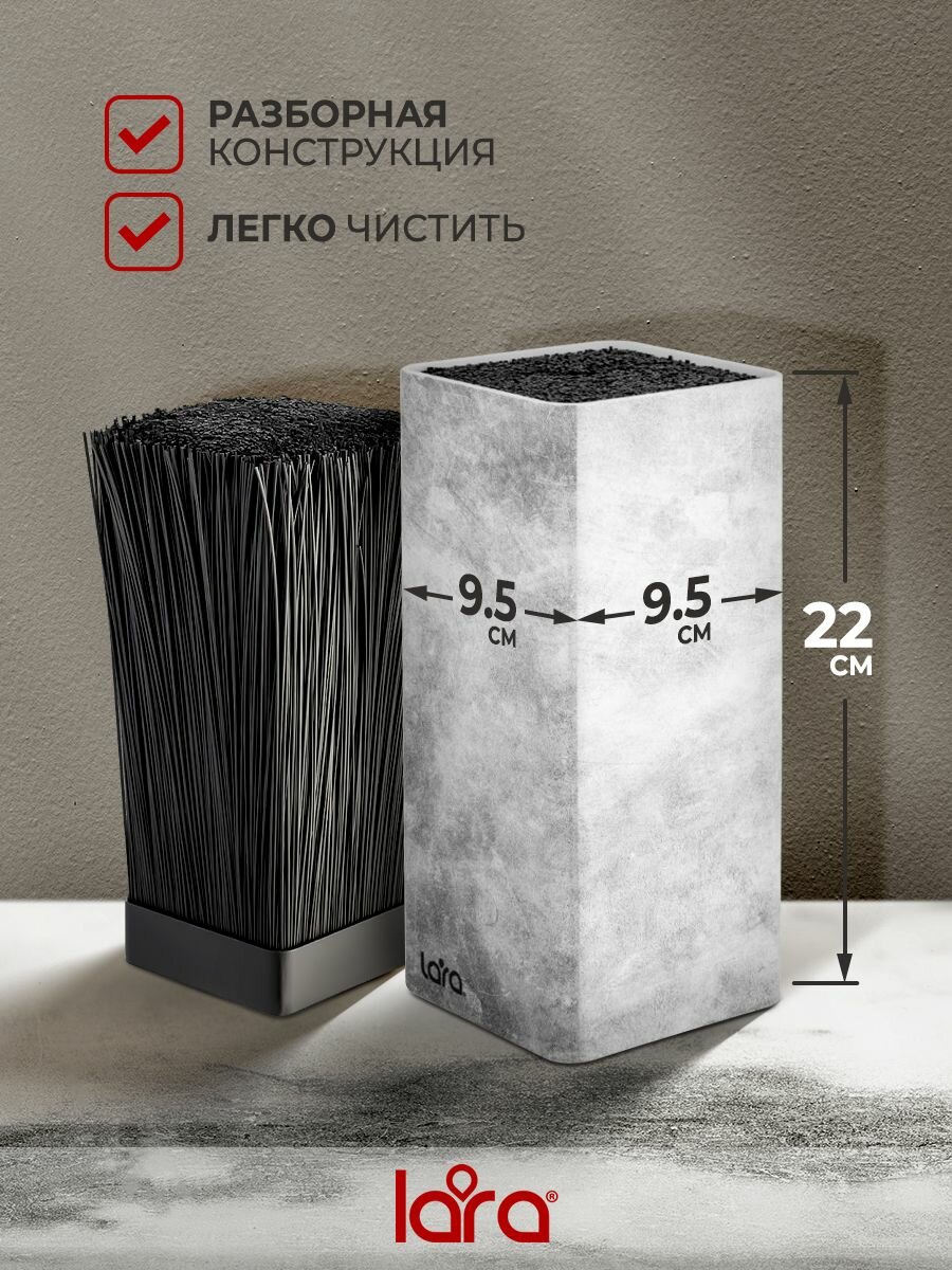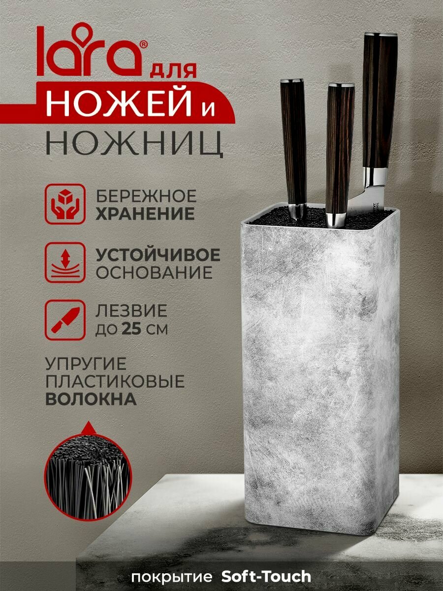 Подставка для ножей LARA LR05-102 Gray/универсальная, квадрат, Soft touch