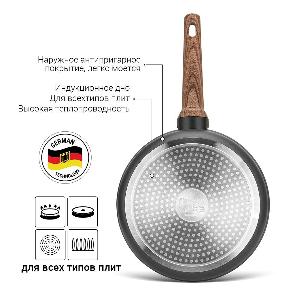 14306 FISSMAN Глубокая сковорода DIAMOND 28x7,5см (алюминий с антипригарным покрытием Greblon C3+) Бакелит с покрытием «софт-тач» с силиконовой вставкой; Индукция