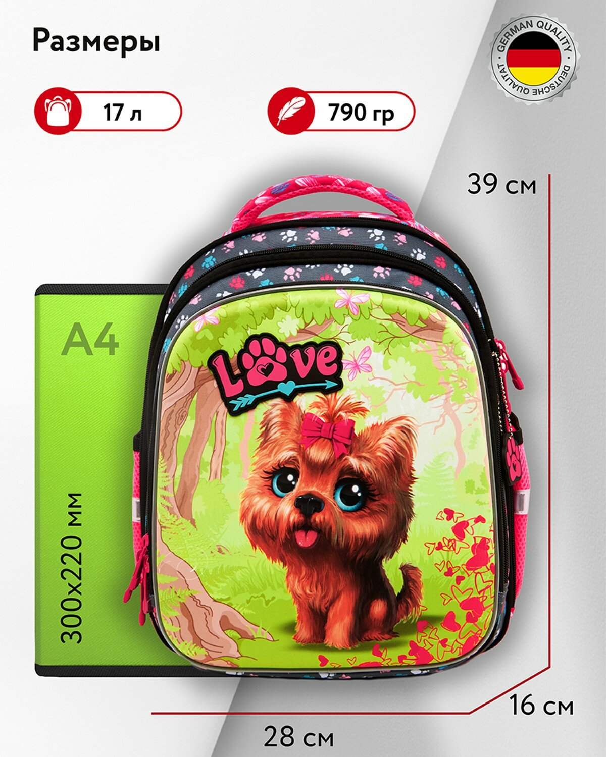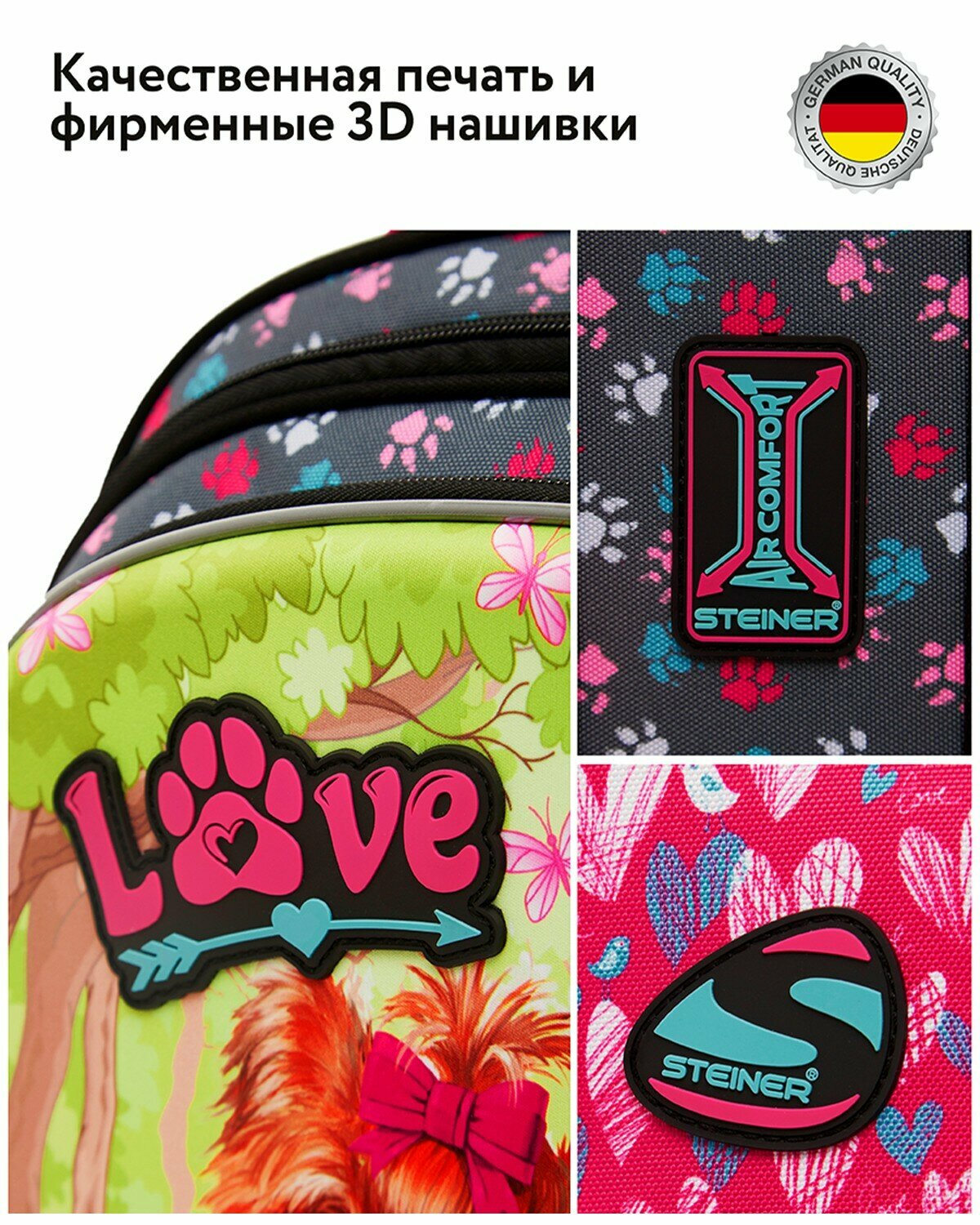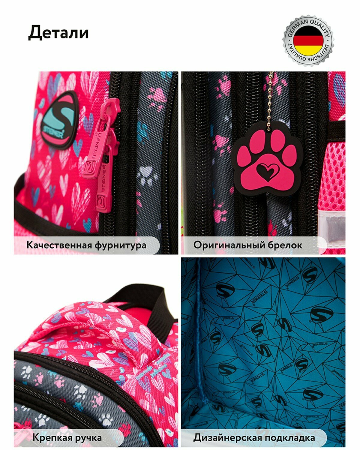 Купить Школьный рюкзак для девочки Steiner / ранец / портфель, полужёсткий, ортопедический, 3 отделения, фирменный брелок в подарок