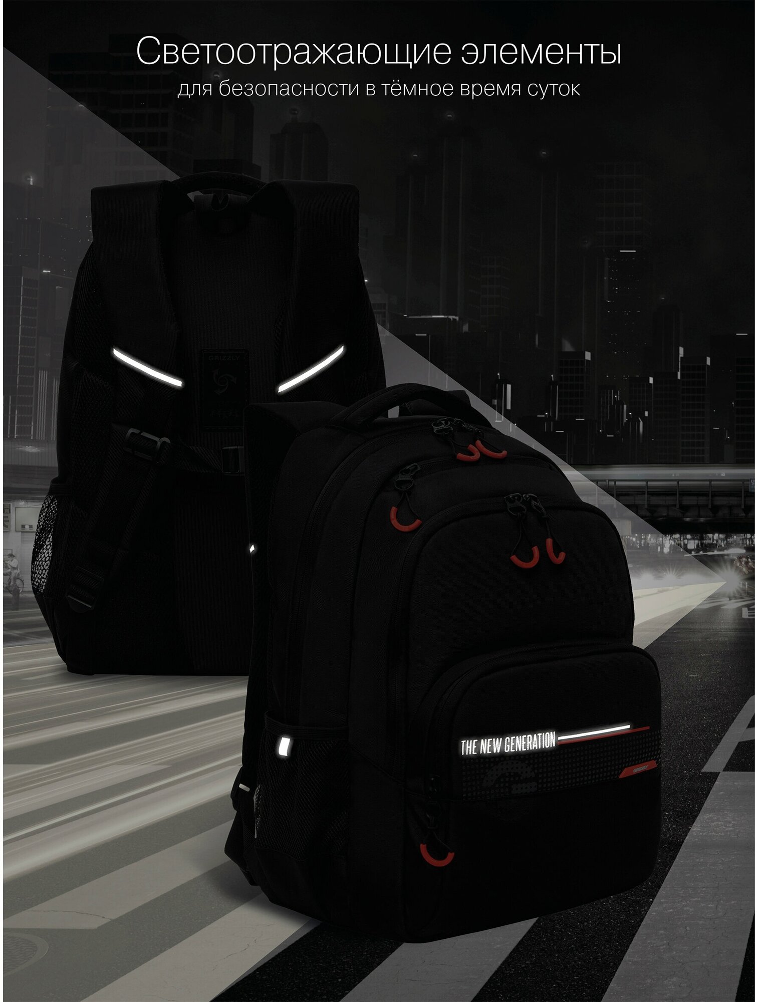 Школьный рюкзак с ортопедической спинкой GRIZZLY RU-330-4 черный - красный, грудная стяжка, 32х45х23см, 2 отделения, 20.5л