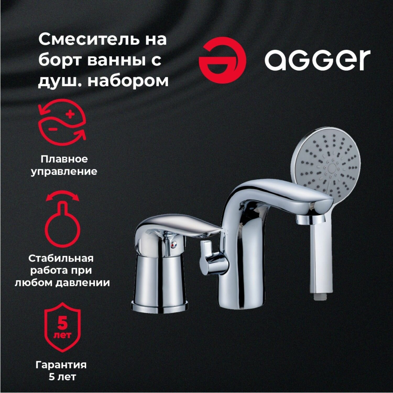 Смеситель для ванны и душа Agger A3333300 на борт ванны