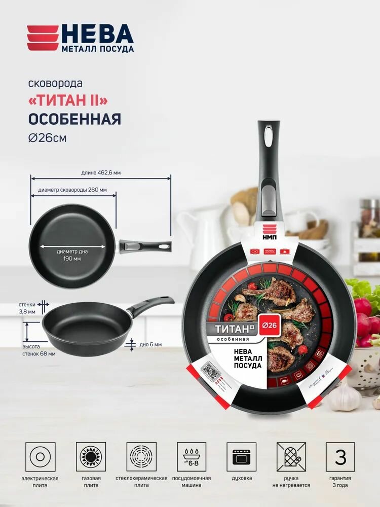 Сковорода Нева Металл Посуда Титан II "Классическая", 26, с/р